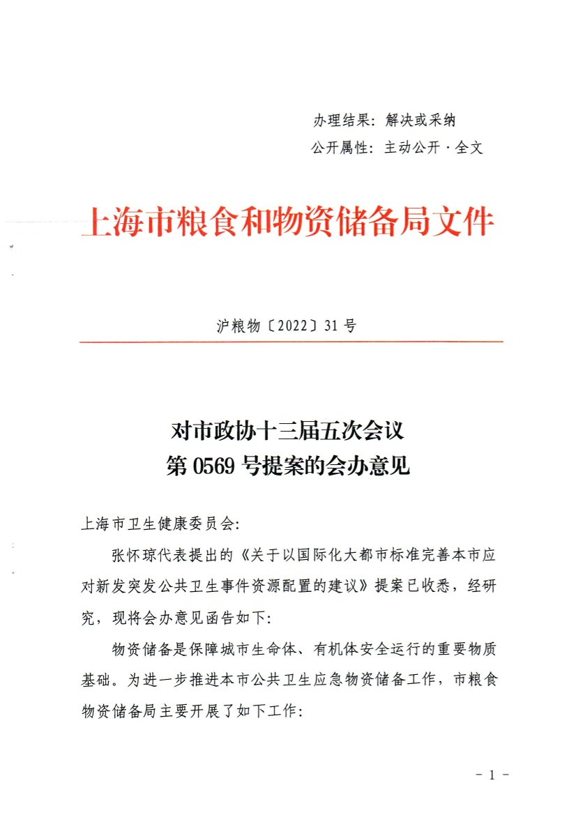 张怀琼委员提出的《关于以国际化大都市标准完善本市应对新发突发公共卫生事件资源配置的建议》提案已收悉,经研究,现将会办意见函告如下: