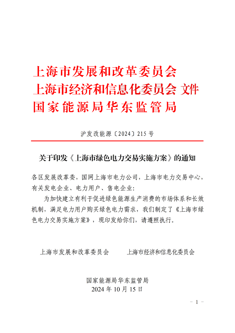 上海市绿色电力交易实施方案