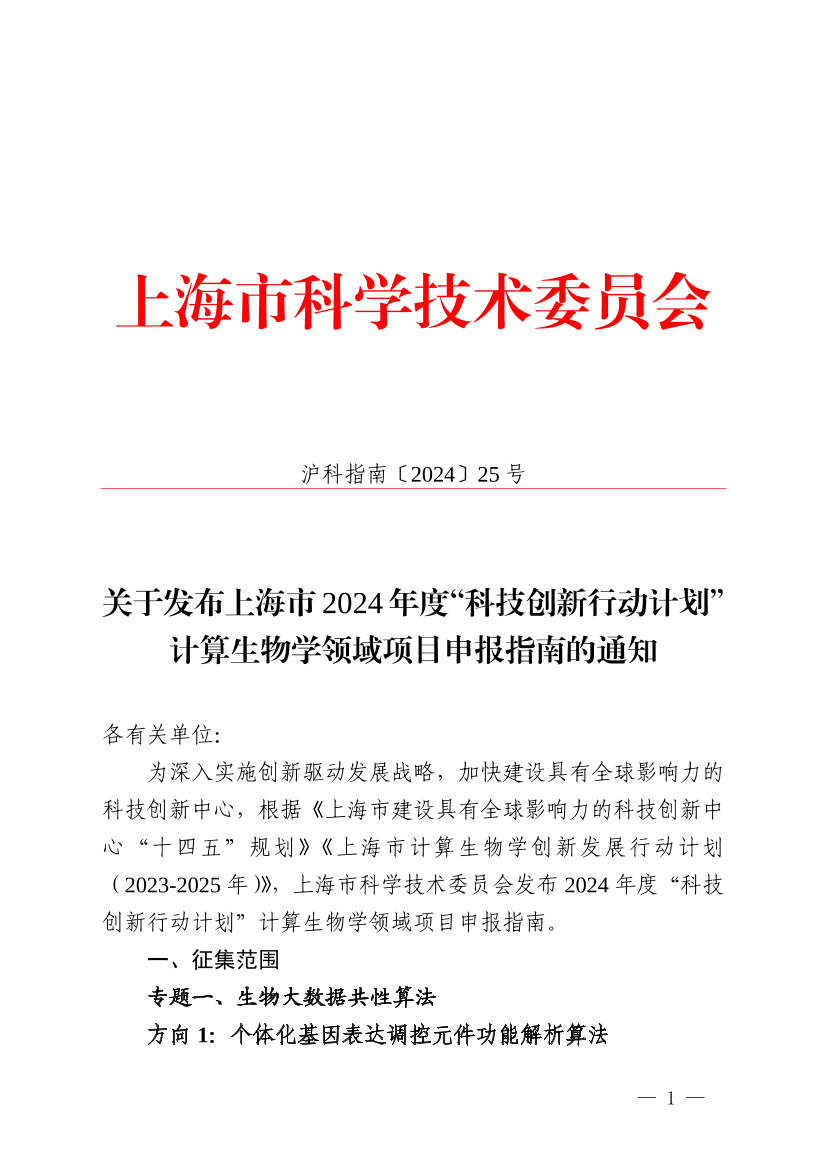为深入实施创新驱动发展战略,加快建设具有全球影响力的科技创新中心,根据《上海市建设具有全球影响力的科技创新中心“十四五”规划》《上海市计算生物学创新发展行动计划(2023-2025年)》,上海市科学技术委员会发布2024年度“科技创新行动计划”计算生物学领域项目申报指南。