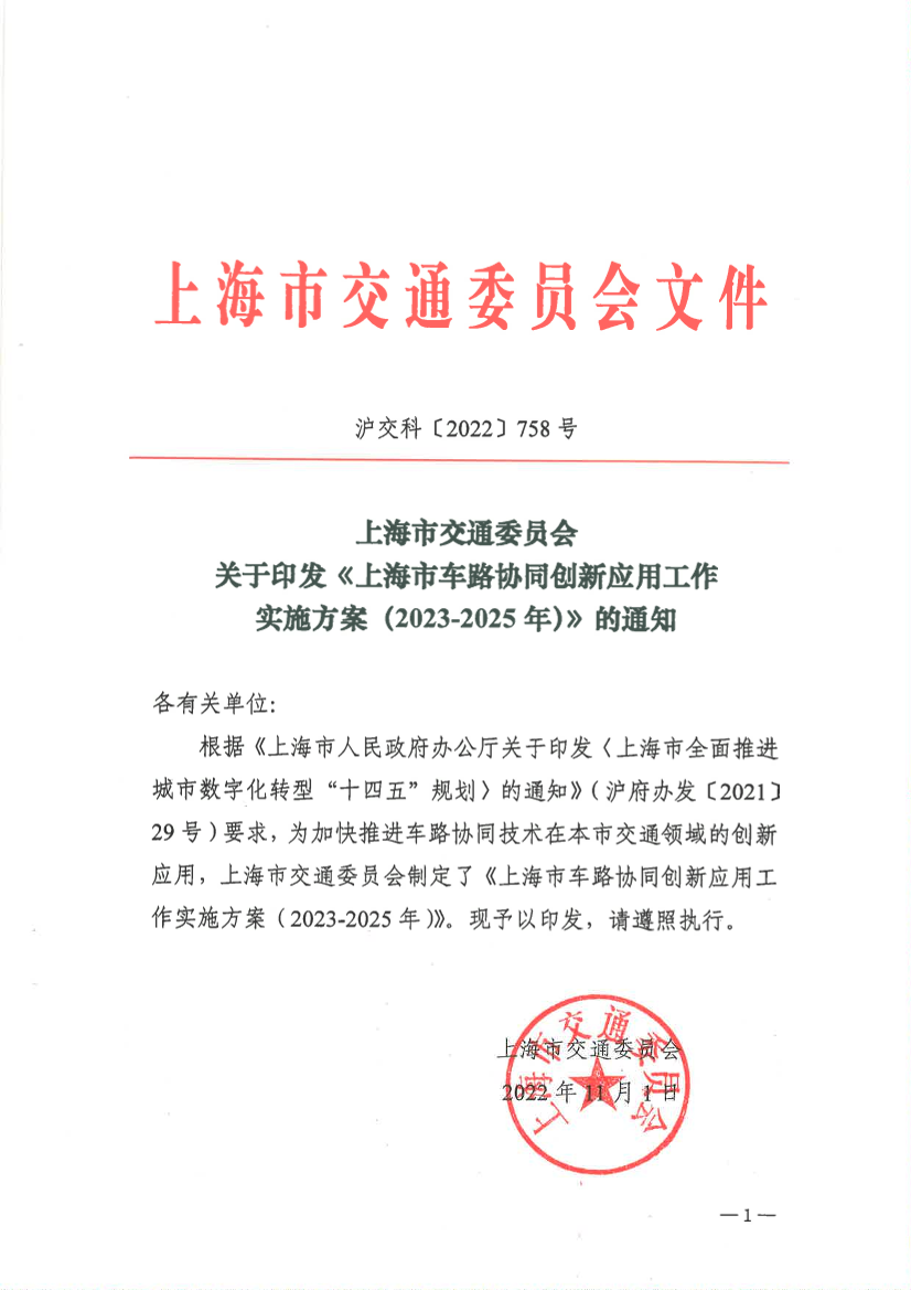 印发日期:2022-11-02 发布日期:2022-11-18 沪交科〔2022〕758 号