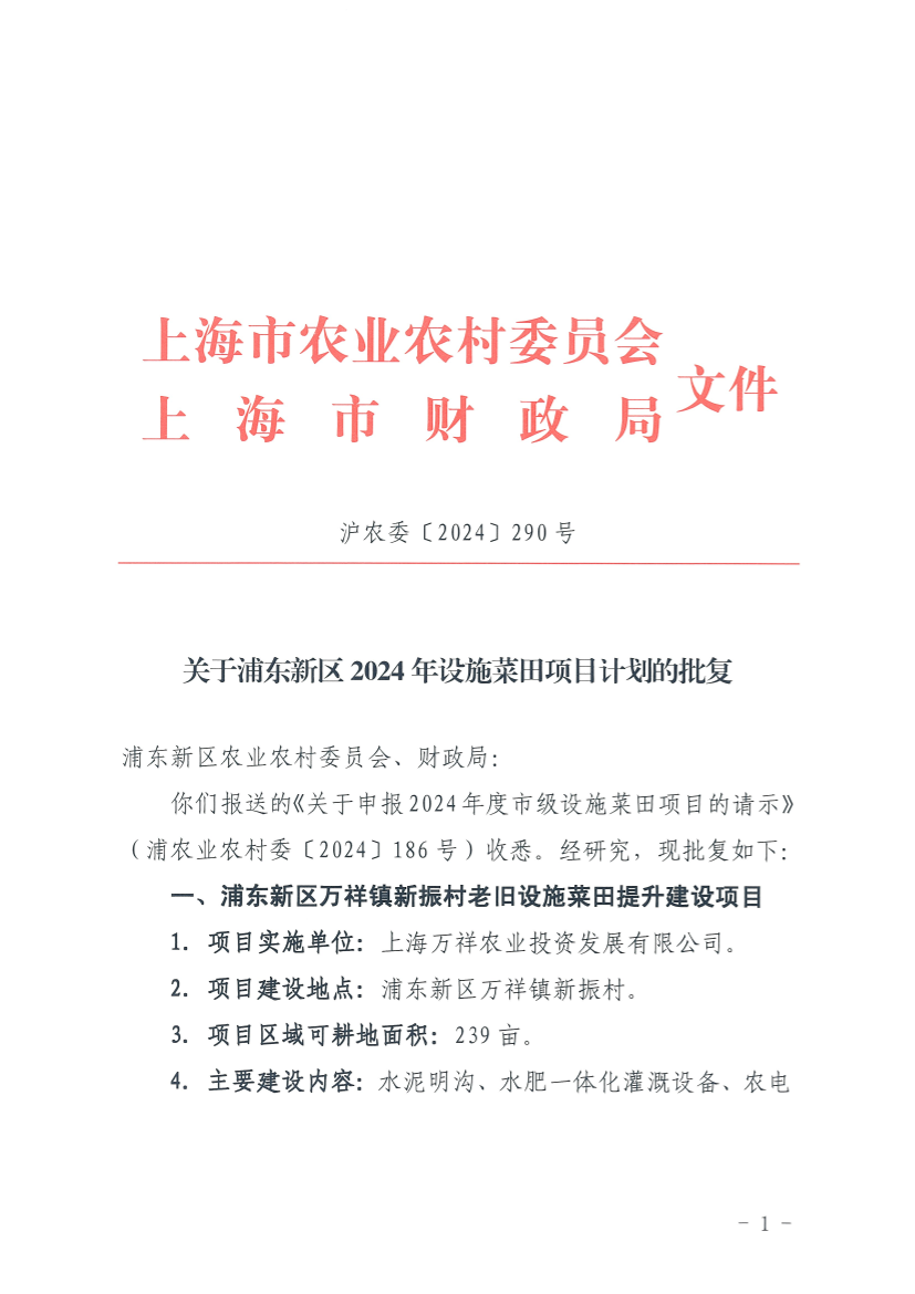 一、浦东新区万祥镇新振村老旧设施菜田提升建设项目
