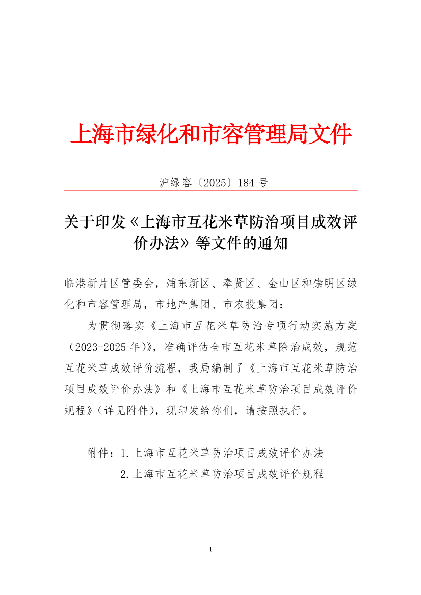 附件:1.上海市互花米草防治项目成效评价办法