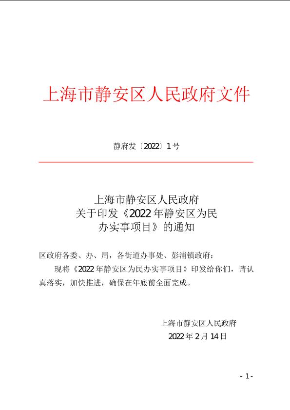 现将《2022年静安区为民办实事项目》印发给你们,请认真落实,加快推进,确保在年底前全面完成。