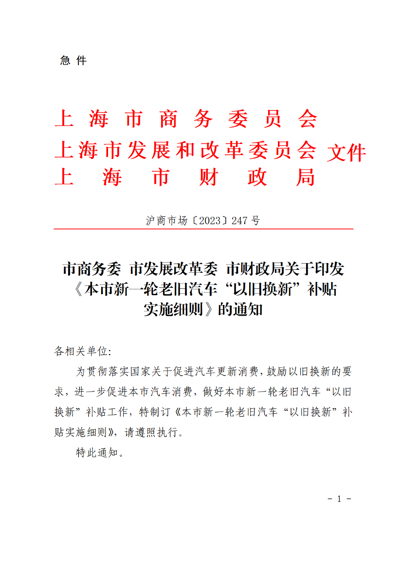 为贯彻落实《国务院办公厅转发国家发展改革委关于恢复和扩大消费措施的通知》(国办函〔2023〕70号)的要求,加快本市老旧汽车“以旧换新”,促进汽车大宗消费,制定本细则。