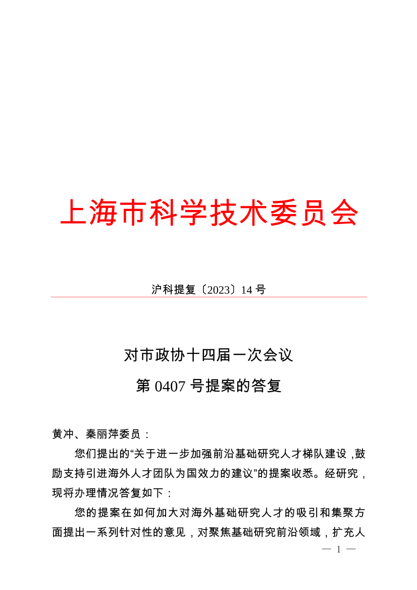 您们提出的“关于进一步加强前沿基础研究人才梯队建设,鼓励支持引进海外人才团队为国效力的建议”的提案收悉。经研究,现将办理情况答复如下: