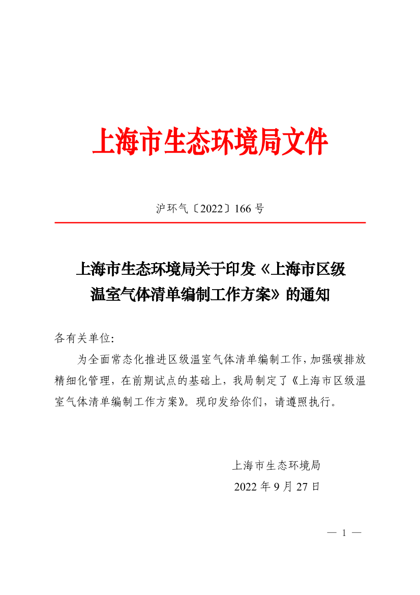 为全面常态化推进区级温室气体清单编制工作,加强碳排放精细化管理,在前期试点的基础上,我局制定了《上海市区级温室气体清单编制工作方案》。现印发给你们,请遵照执行。