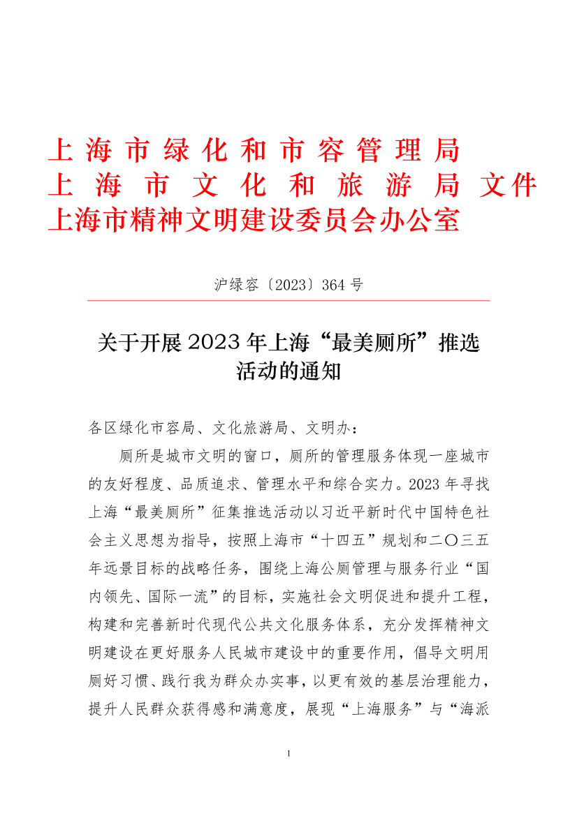 2023年寻找上海“最美厕所”征集推选活动将在全市范围内展开。本次推选活动采用社会推荐与行业申报相结合、市民投票与专家评审相结合的方式进行,获评厕所单位名单将集中向社会发布。