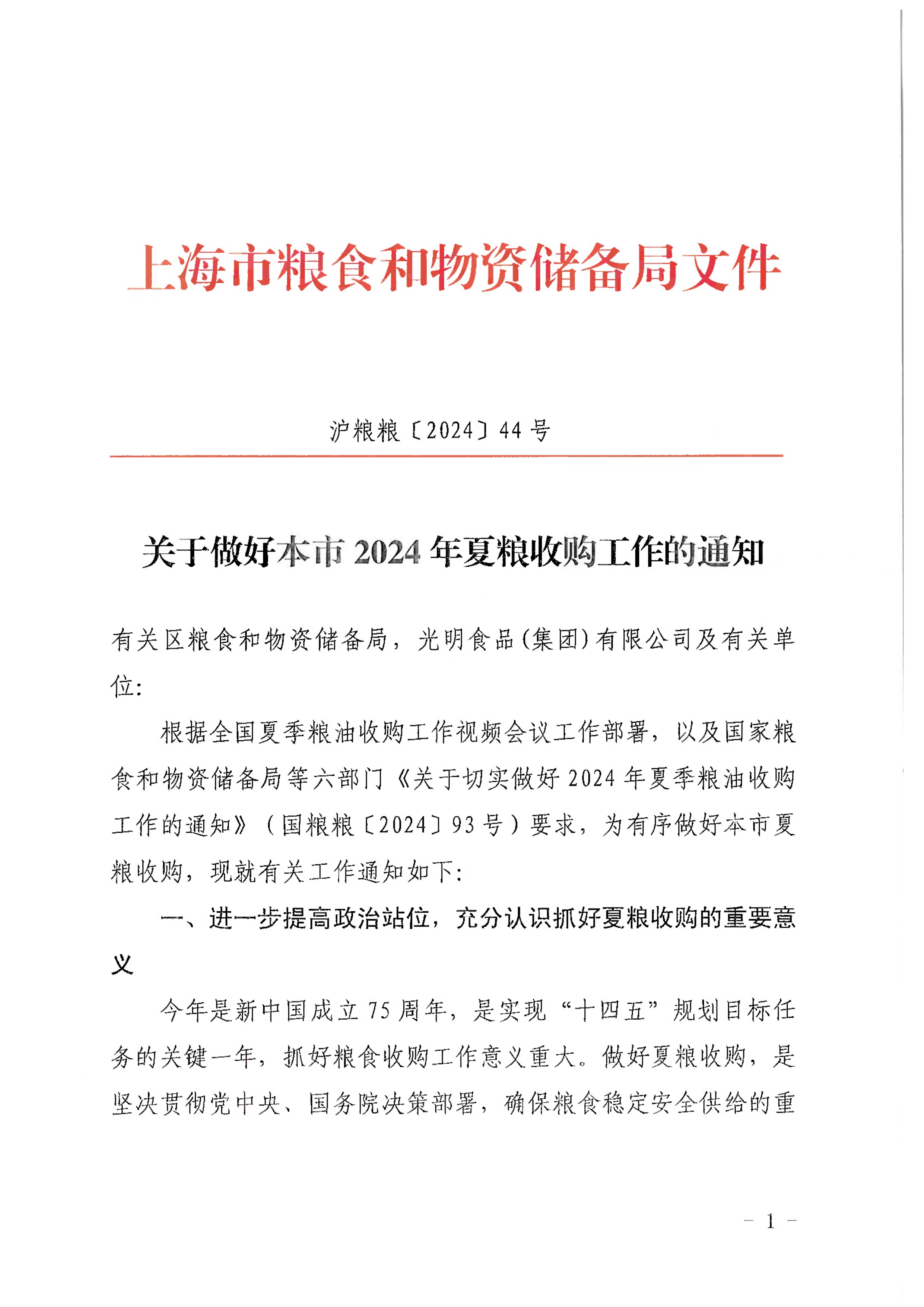 根据全国夏季粮油收购工作视频会议工作部署,以及国家粮食和物资储备局等六部门《关于切实做好2024年夏季粮油收购工作的通知》(国粮粮〔2024〕93号)要求,为有序做好本市夏粮收购,现就有关工作通知如下: