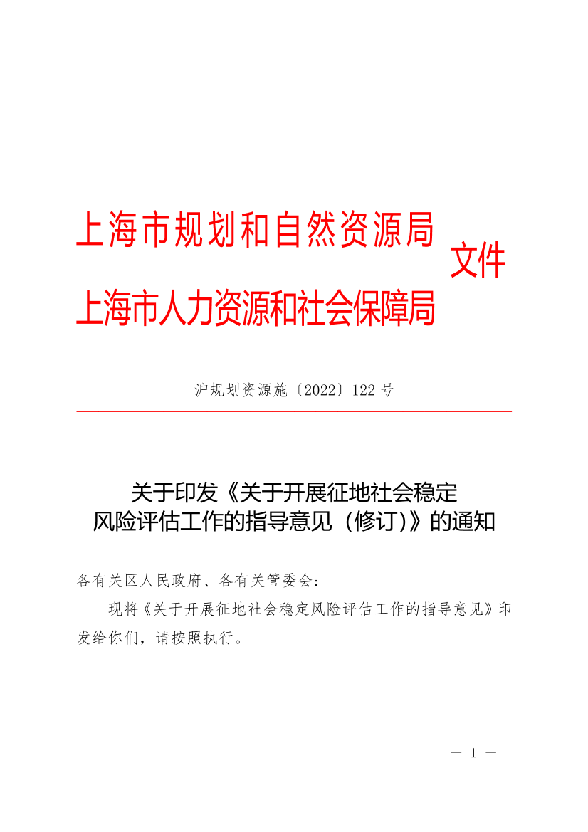 关于印发〈关于开展征地社会稳定风险评估工作的指导意见(修订〉的通知