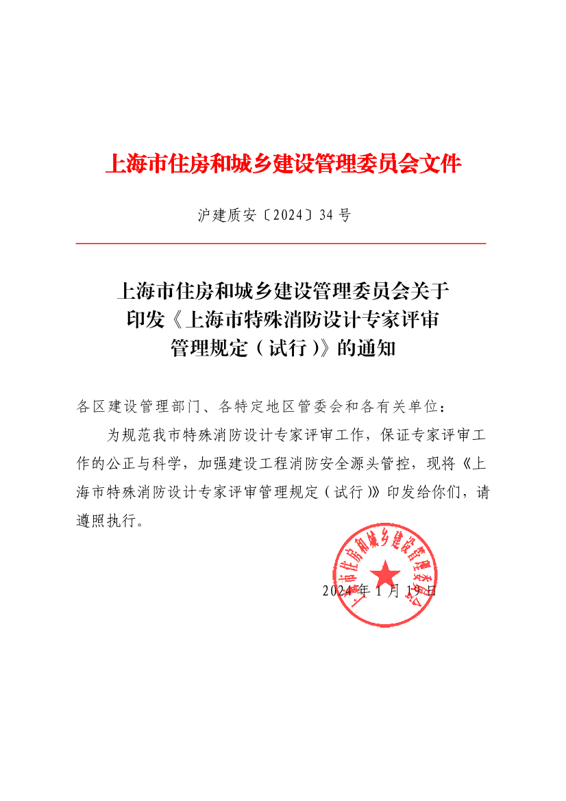 关于印发《上海市特殊消防设计专家评审管理规定(试行)》的通知