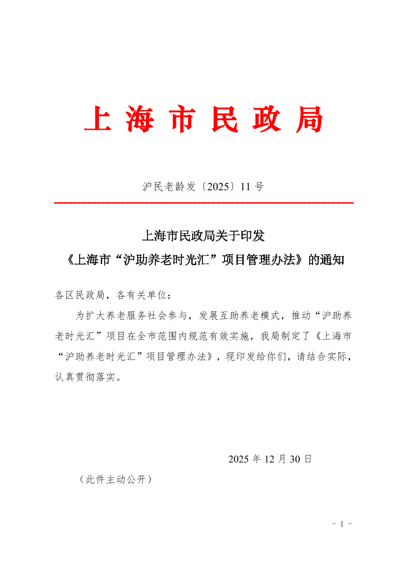 上海市“沪助养老时光汇”项目管理办法