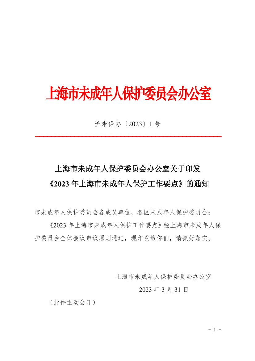 《2023年上海市未成年人保护工作要点》经上海市未成年人保护委员会全体会议审议原则通过,现印发给你们,请抓好落实。