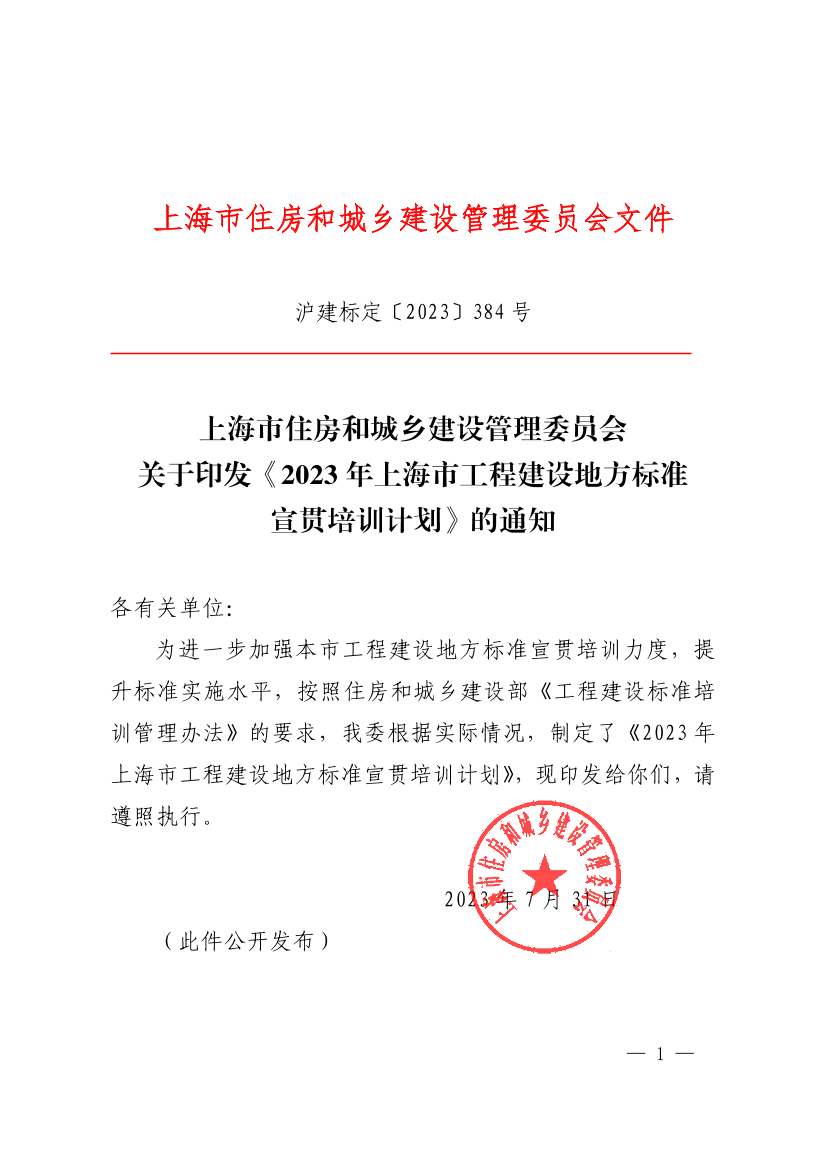关于印发《2023年上海市工程建设地方标准宣贯培训计划》的通知