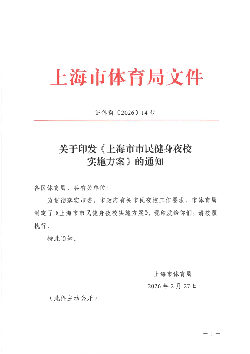 为贯彻落实市委、市政府有关市民夜校工作要求,市体育局制定了《上海市市民健身夜校实施方案》。现印发给你们,请按照执行。