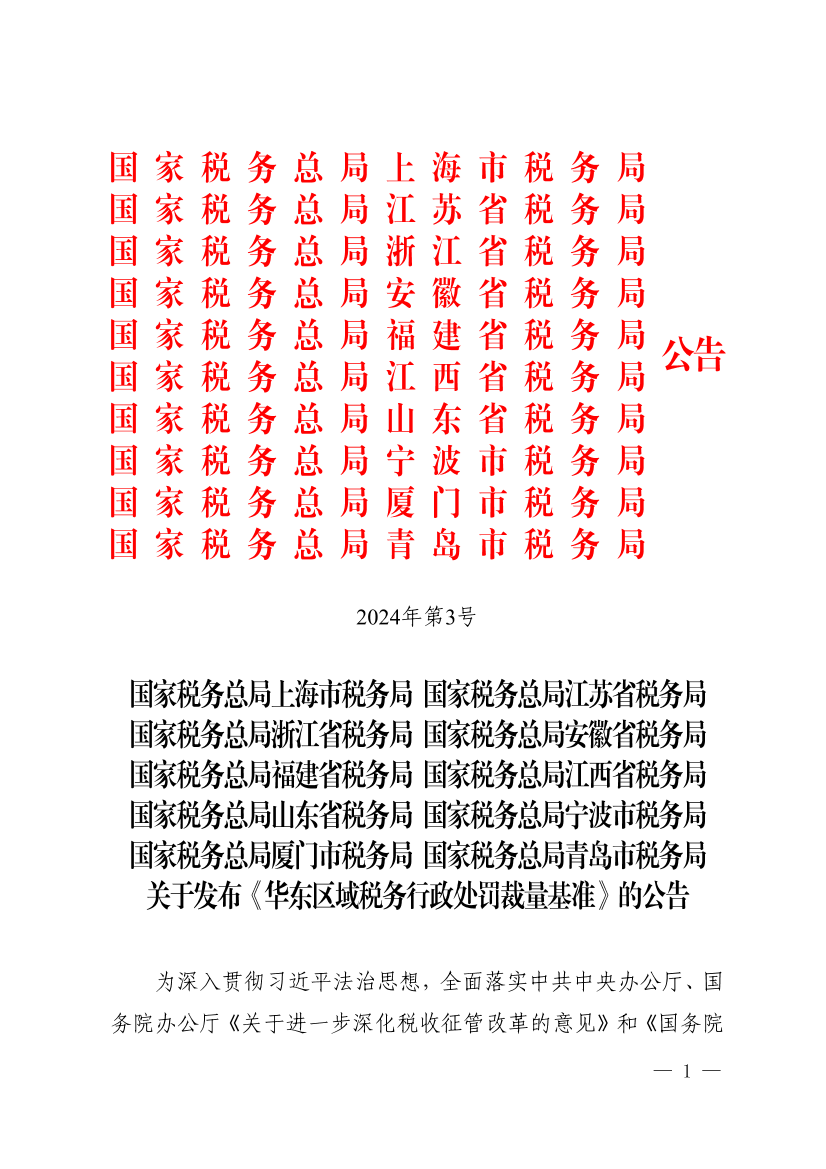 关于发布《华东区域税务行政处罚裁量基准》的公告
