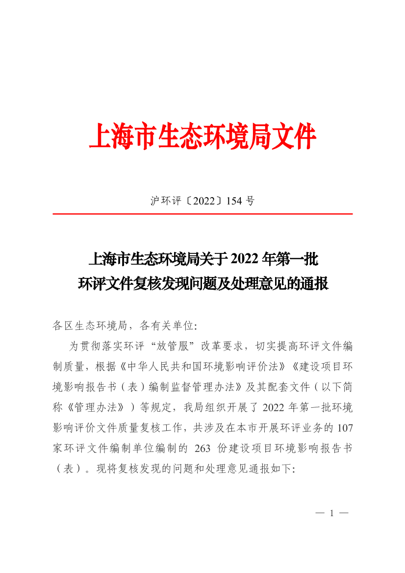 为贯彻落实环评“放管服”改革要求,切实提高环评文件编制质量,根据《中华人民共和国环境影响评价法》《建设项目环境影响报告书(表)编制监督管理办法》及其配套文件(以下简称《管理办法》)等规定,我局组织开展了2022年第一批环境影响评价文件质量复核工作,共涉及在本市开展环评业务的107家环评文件编制单位编制的263份建设项目环境影响报告书(表)。现将复核发现的问题和处理意见通报如下: