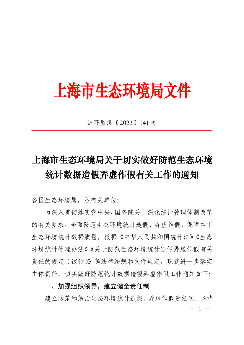为深入贯彻落实党中央、国务院关于深化统计管理体制改革的有关要求,全面防范生态环境统计造假、弄虚作假,保障本市生态环境统计数据质量,根据《中华人民共和国统计法》《生态环境统计管理办法》《关于防范生态环境统计造假弄虚作假有关责任的规定(试行)》等法律法规和文件规定,现就进一步落实主体责任,切实做好防范统计数据造假弄虚作假工作通知如下: