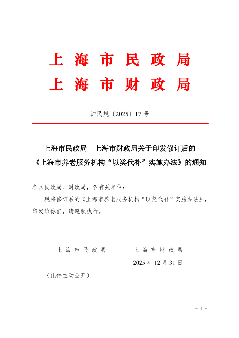 现将修订后的《上海市养老服务机构“以奖代补”实施办法》,印发给你们,请遵照执行。
