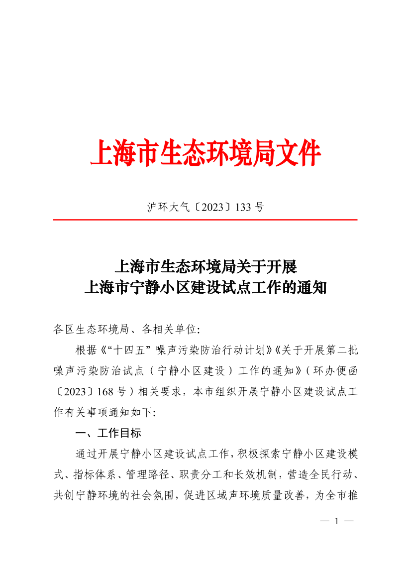 根据《“十四五”噪声污染防治行动计划》《关于开展第二批噪声污染防治试点(宁静小区建设)工作的通知》(环办便函〔2023〕168号)相关要求,本市组织开展宁静小区建设试点工作有关事项通知如下: