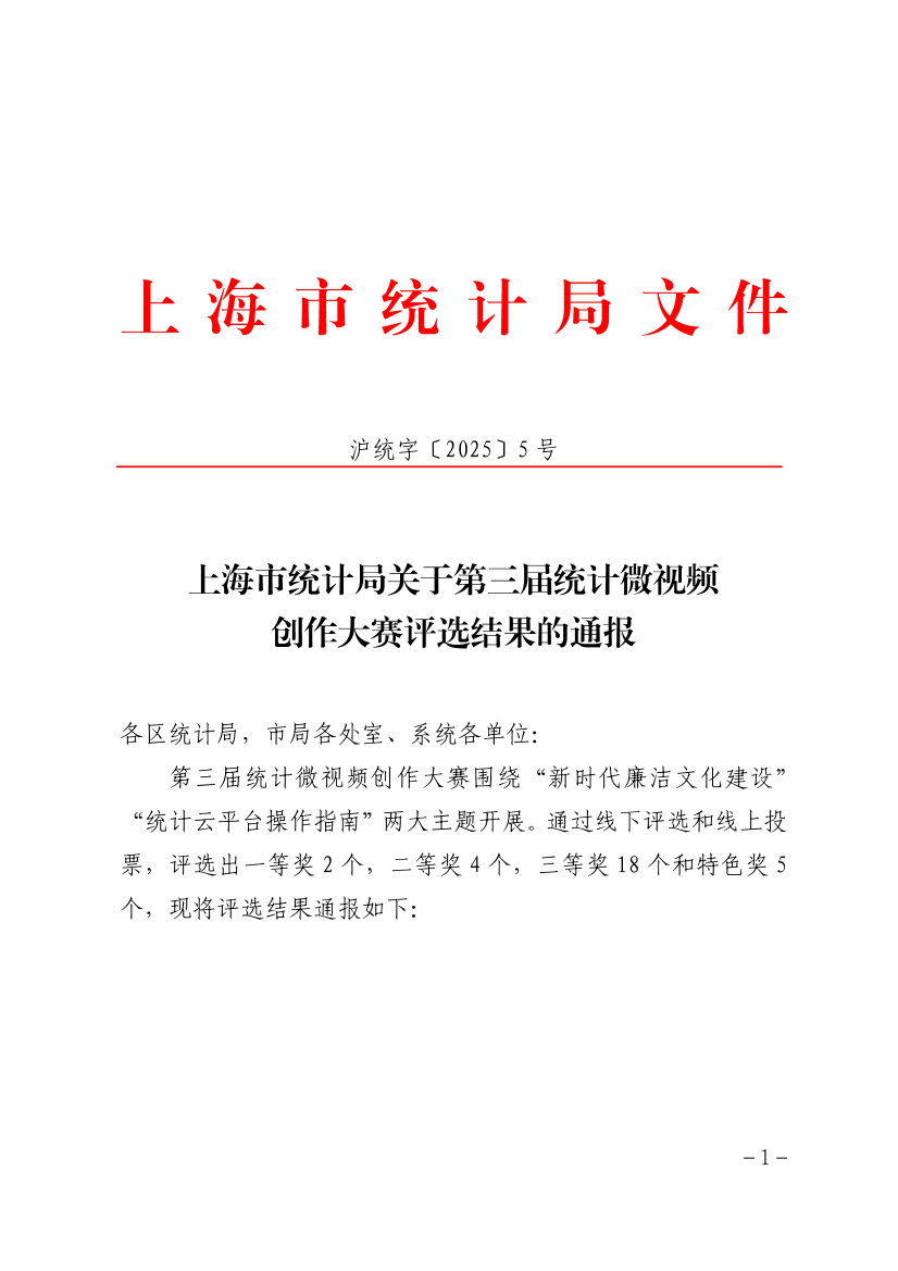第三届统计微视频创作大赛围绕“新时代廉洁文化建设”“统计云平台操作指南”两大主题开展。通过线下评选和线上投票,评选出一等奖2个,二等奖4个,三等奖18个和特色奖5个,现将评选结果通报如下: