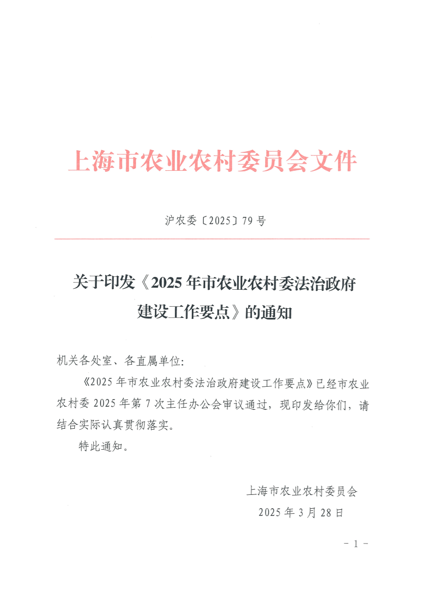 2025年是全面完成国家和本市法治政府建设“十四五”实施纲要、规划目标任务的收官之年。市农业农村委要深入贯彻落实习近平法治思想,持续推进法治政府建设各项工作提质增效,为进一步深化本市农村改革、扎实推进乡村全面振兴提供坚实有力的法治保障。