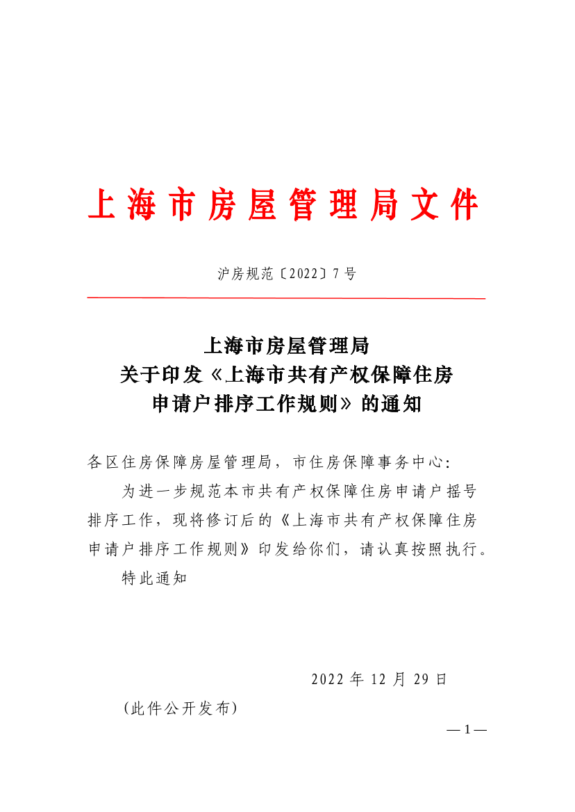 为进一步规范本市共有产权保障住房申请户摇号排序工作,现将修订后的《上海市共有产权保障住房申请户排序工作规则》印发给你们,请认真按照执行。