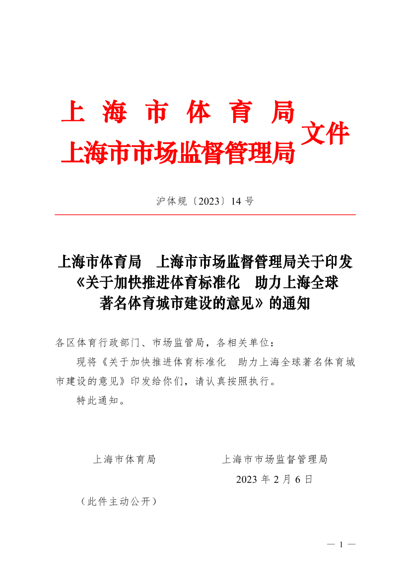 现将《关于加快推进体育标准化 助力上海全球著名体育城市建设的意见》印发给你们,请认真按照执行。