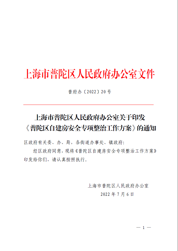 经区政府同意,现将《普陀区自建房安全专项整治工作方案》印发给你们,请认真按照执行。