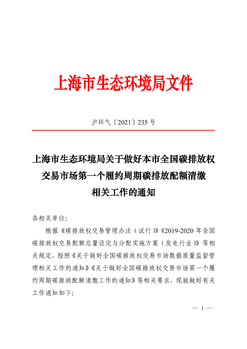 附件:1. 上海市全国碳市场第一个履约周期应清缴履约的重点排放单位名单