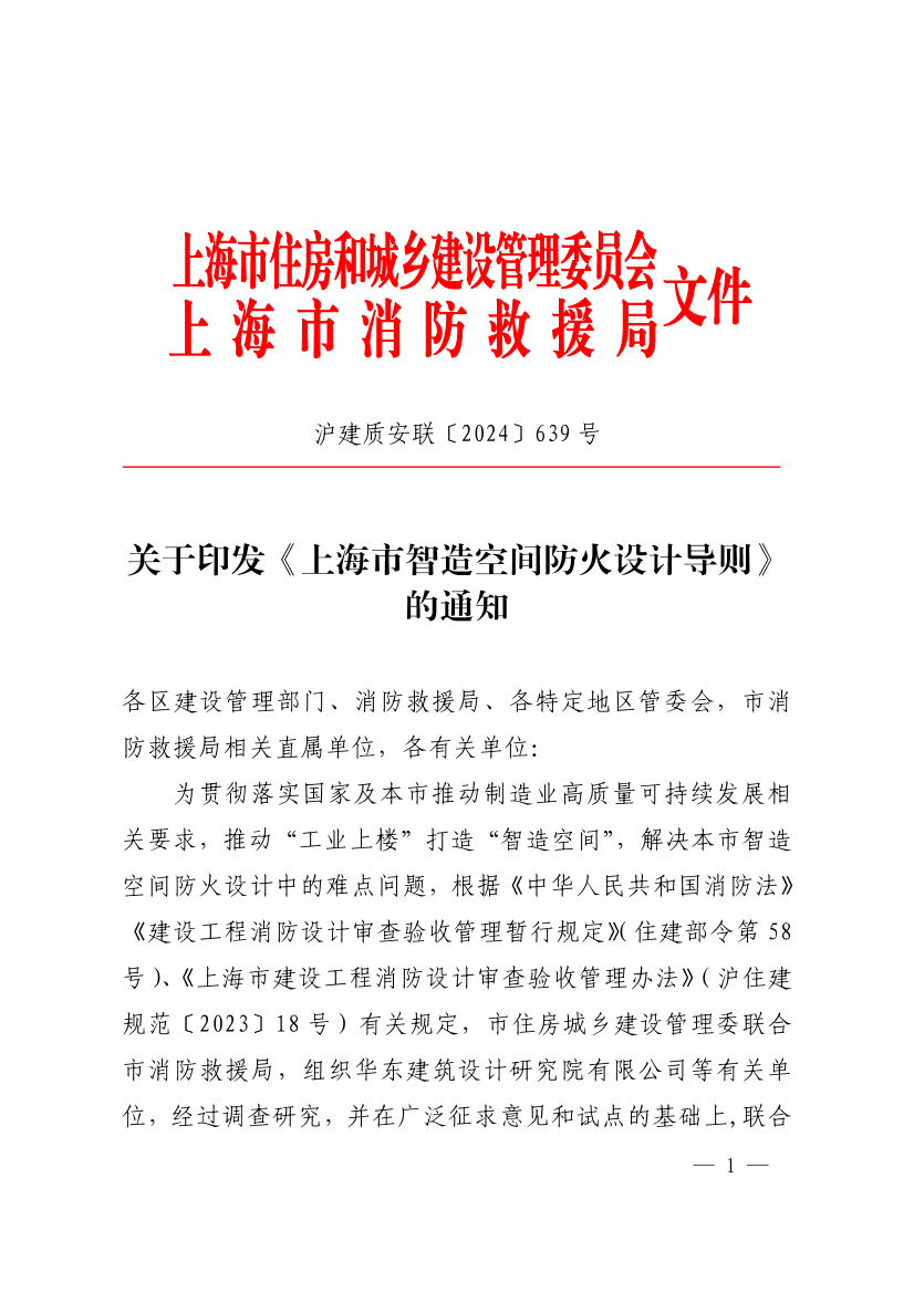 关于印发《上海市智造空间防火设计导则》的通知