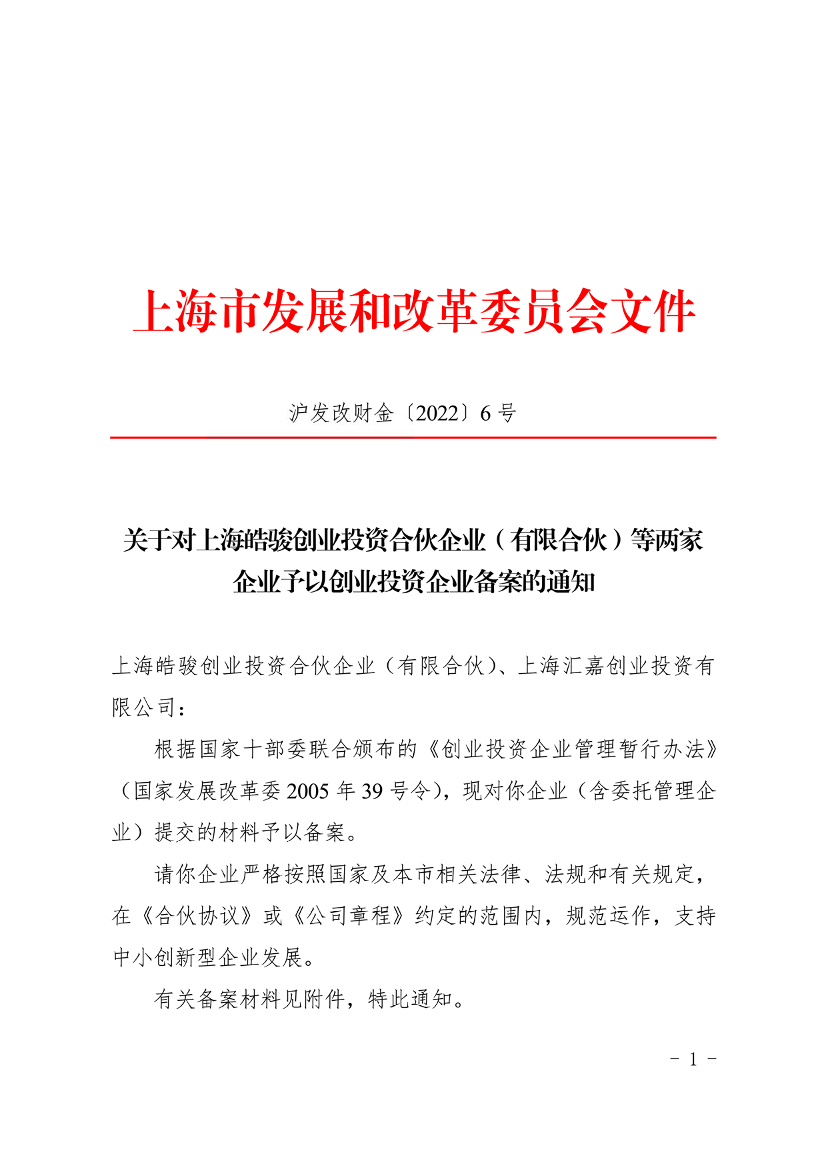 1、上海皓骏创业投资合伙企业(有限合伙)备案申请书
