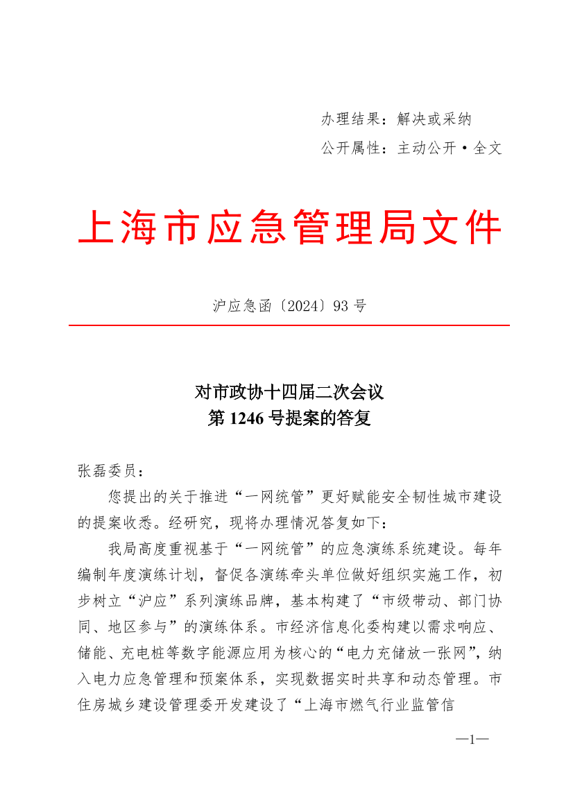 您提出的关于推进“一网统管”更好赋能安全韧性城市建设的提案收悉。经研究,现将办理情况答复如下: