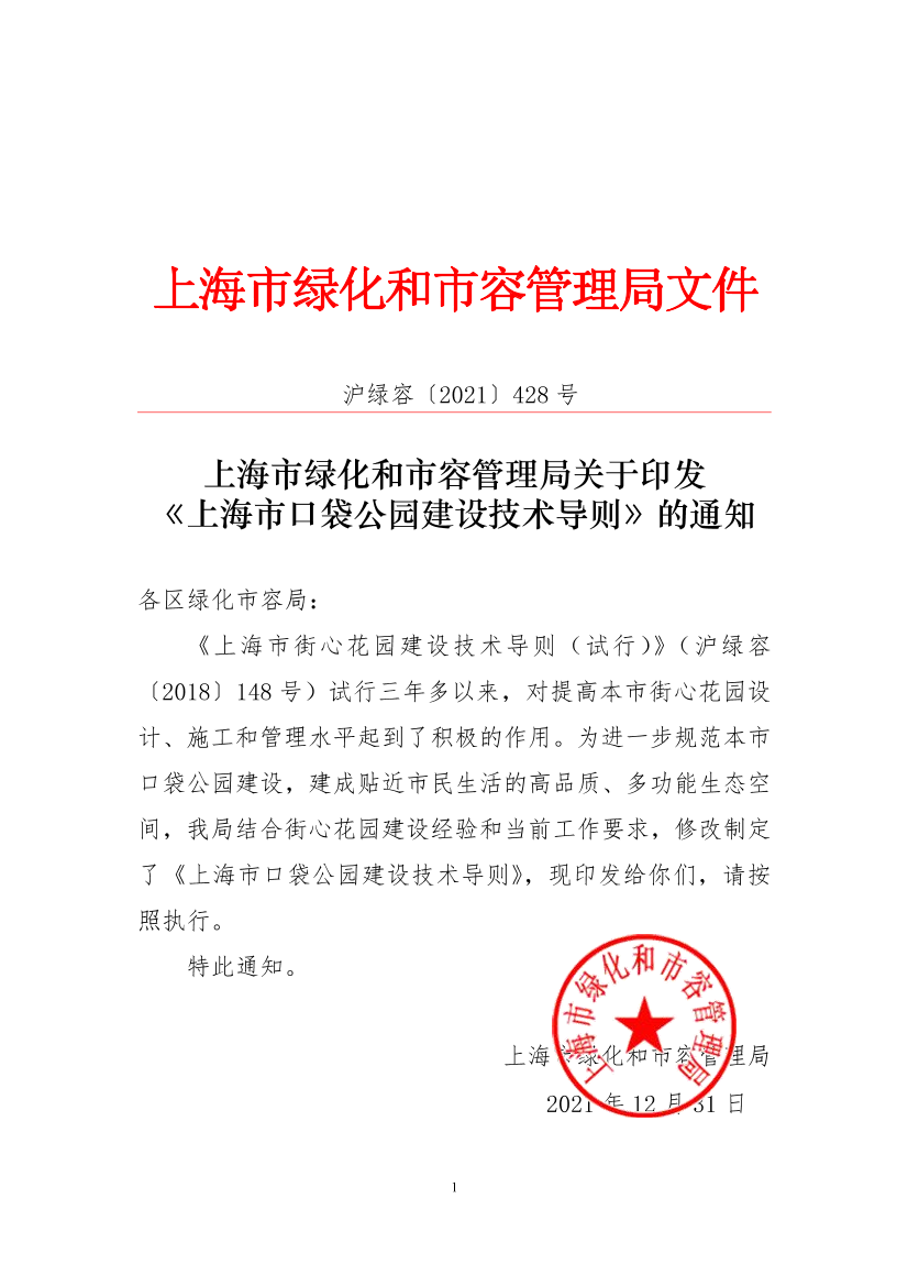 《上海市街心花园建设技术导则(试行)》(沪绿容〔2018〕148号)试行三年多以来,对提高本市街心花园设计、施工和管理水平起到了积极的作用。为进一步规范本市口袋公园建设,建成贴近市民生活的高品质、多功能生态空间,我局结合街心花园建设经验和当前工作要求,修改制定了《上海市口袋公园建设技术导则》,现印发给你们,请按照执行。