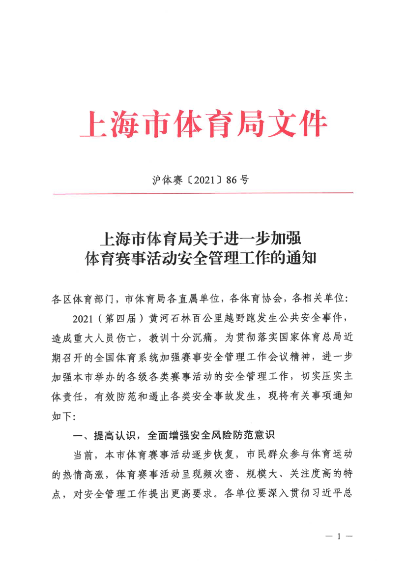 2021(第四届)黄河石林百公里越野跑发生公共安全事件,造成重大人员伤亡,教训十分沉痛。为贯彻落实国家体育总局近期召开的全国体育系统加强赛事安全管理工作会议精神,进一步加强本市举办的各级各类赛事活动的安全管理工作,切实压实主体责任,有效防范和遏止各类安全事故发生,现将有关事项通知如下: