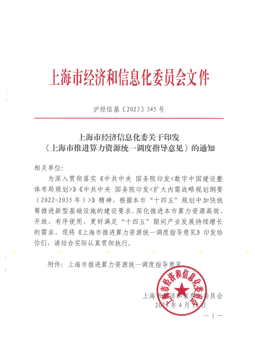 附件:上海市推进算力资源统一调度指导意见