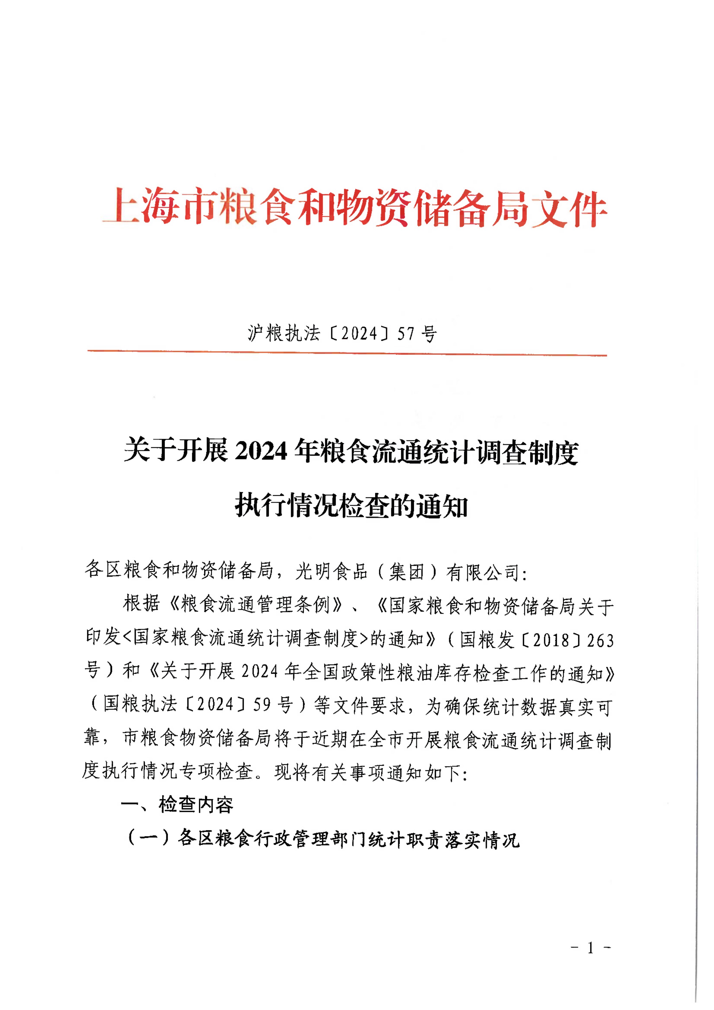 根据《粮食流通管理条例》、《国家粮食和物资储备局关于印发<国家粮食流通统计调查制度>的通知》(国粮发〔2018〕263号)和《关于开展2024年全国政策性粮油库存检查工作的通知》(国粮执法〔2024〕59号)等文件要求,为确保统计数据真实可靠,市粮食物资储备局将于近期在全市开展粮食流通统计调查制度执行情况专项检查。现将有关事项通知如下: