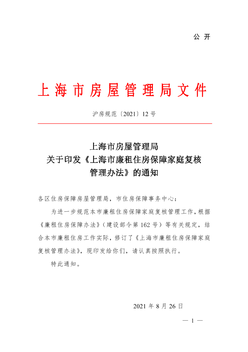上海市房屋管理局关于印发《上海市廉租住房保障家庭复核管理办法》的通知