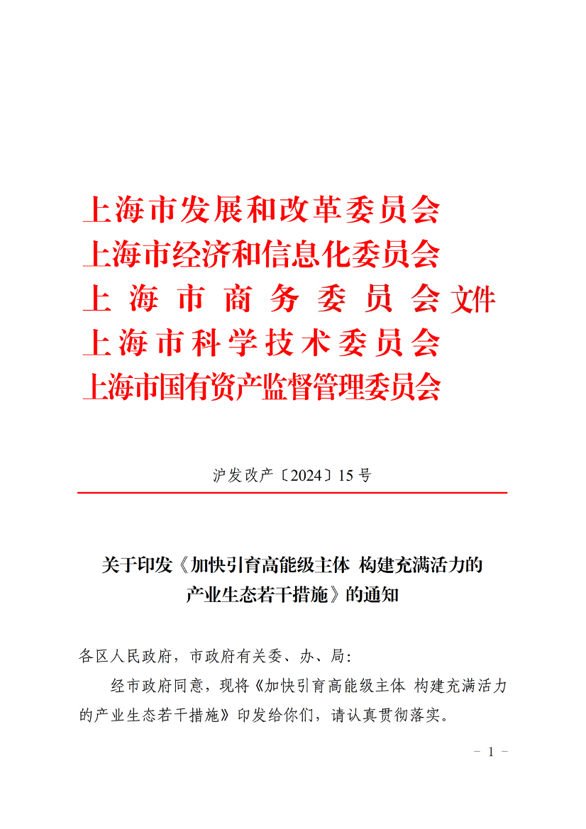 加快引育高能级主体 构建充满活力的产业生态若干措施