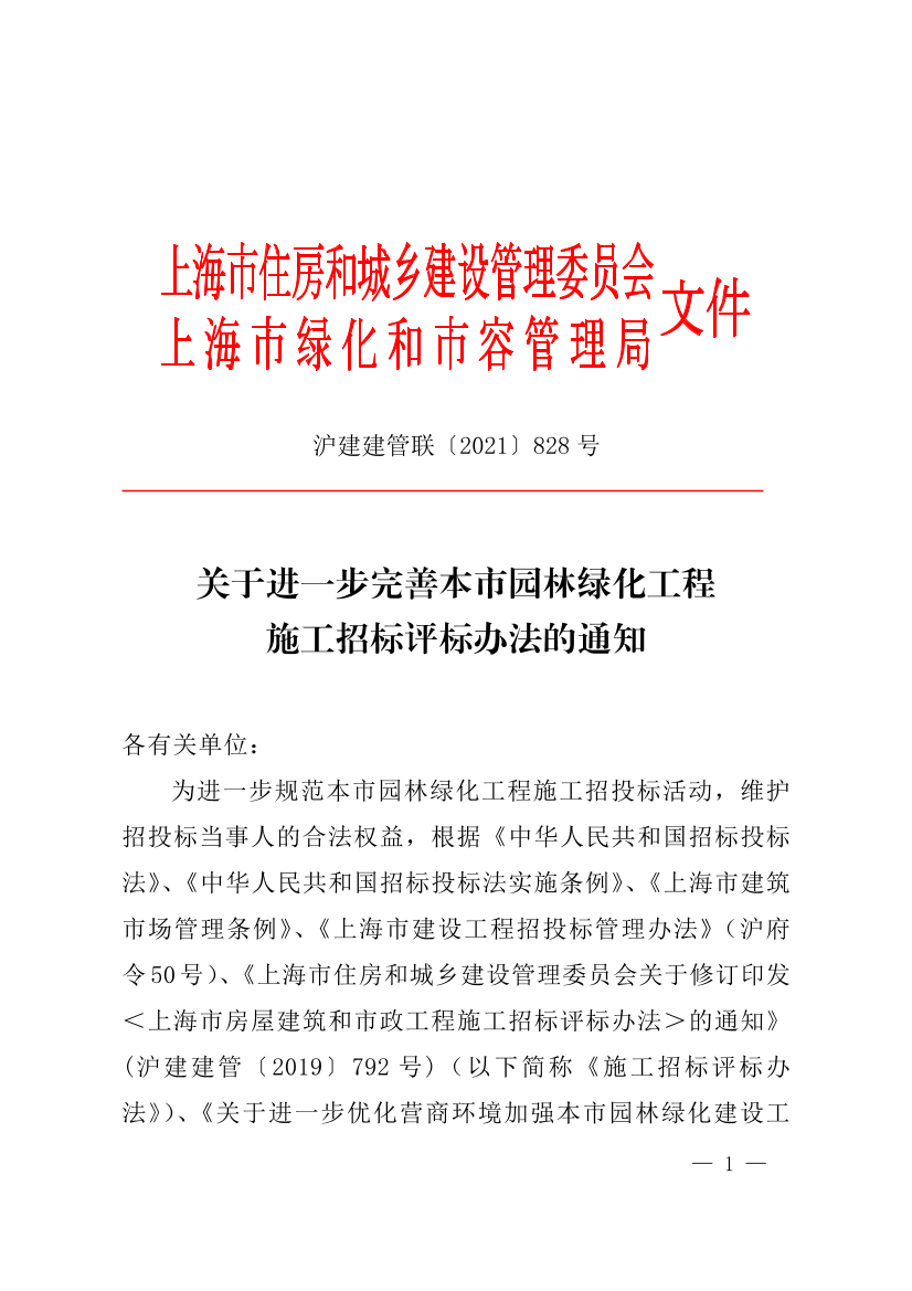 本通知自 2021 年 12 月 23 日起施行,有效期五年。原《关于进一步规范本市园林绿化工程施工招标评标办法的通知》(沪建管联〔2015〕701 号)同时废止。