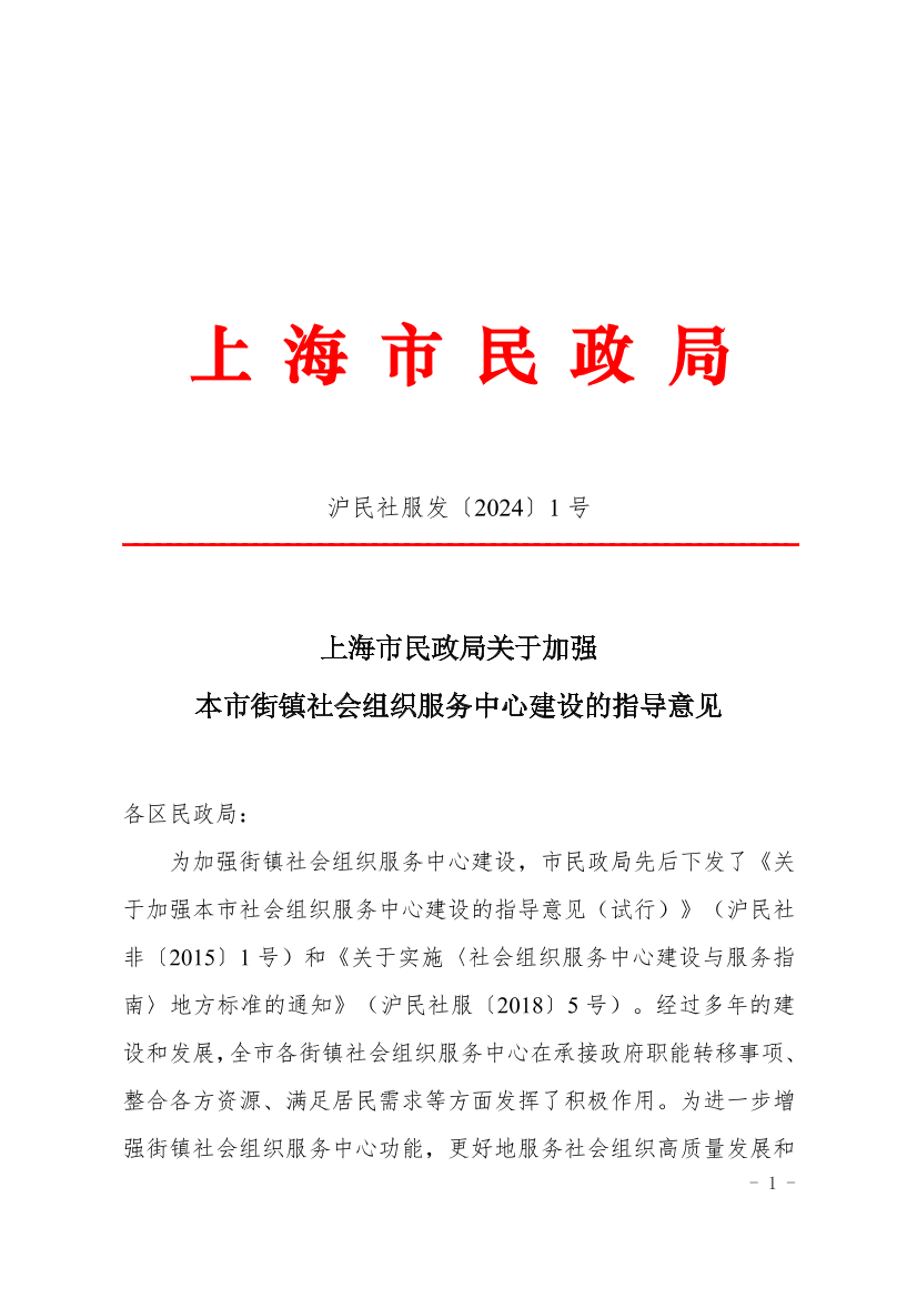 为加强街镇社会组织服务中心建设,市民政局先后下发了《关于加强本市社会组织服务中心建设的指导意见(试行)》(沪民社非〔2015〕1号)和《关于实施〈社会组织服务中心建设与服务指南〉地方标准的通知》(沪民社服〔2018〕5号)。经过多年的建设和发展,全市各街镇社会组织服务中心在承接政府职能转移事项、整合各方资源、满足居民需求等方面发挥了积极作用。为进一步增强街镇社会组织服务中心功能,更好地服务社会组织高质量发展和服务民生保障,现提出如下意见: