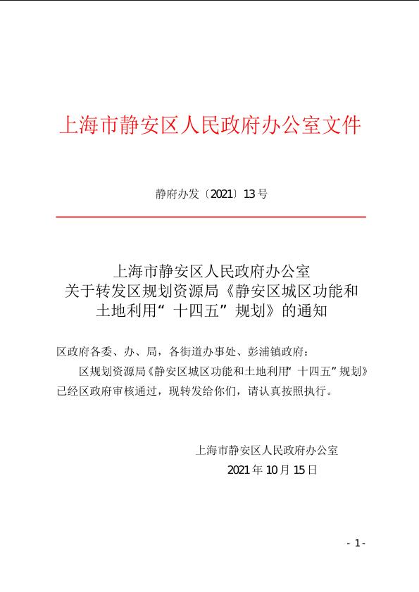 区规划资源局《静安区城区功能和土地利用“十四五”规划》已经区政府审核通过,现转发给你们,请认真按照执行。
