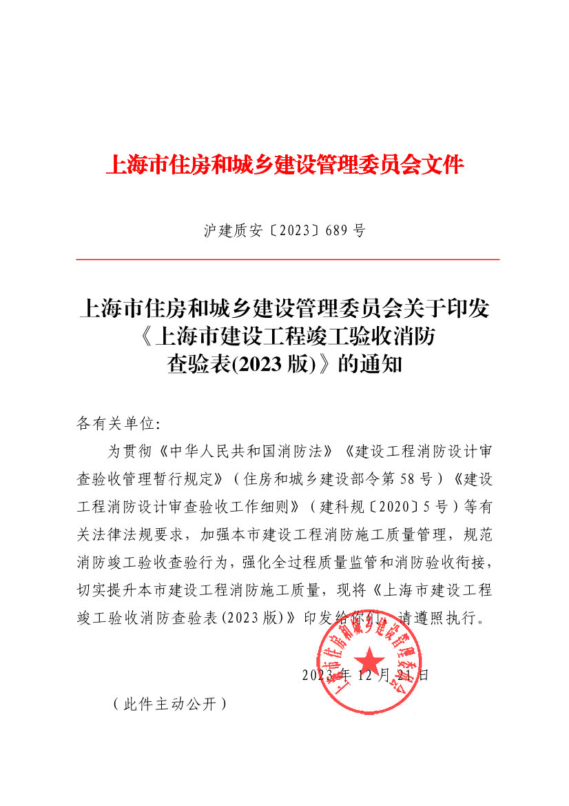 关于印发《上海市建设工程竣工验收消防查验表(2023版)》的通知