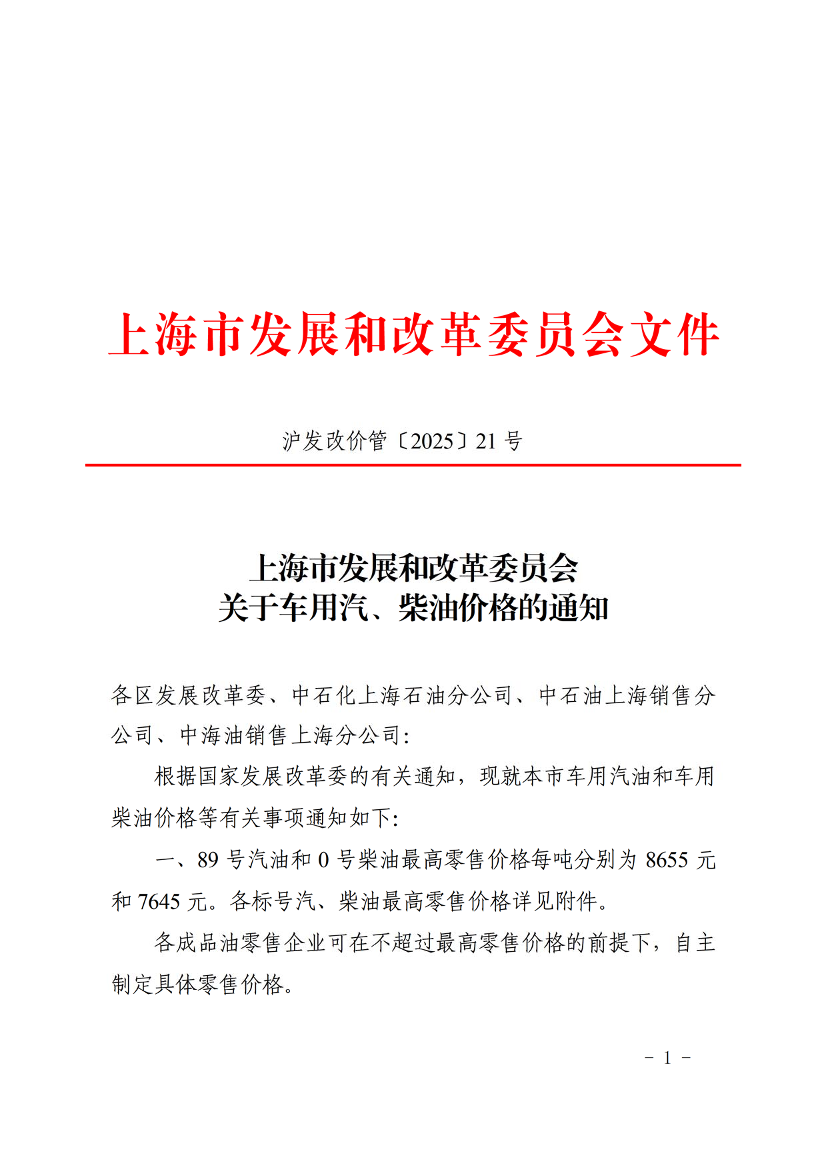 各区发展改革委、中石化上海石油分公司、中石油上海销售分公司、中海油销售上海分公司: