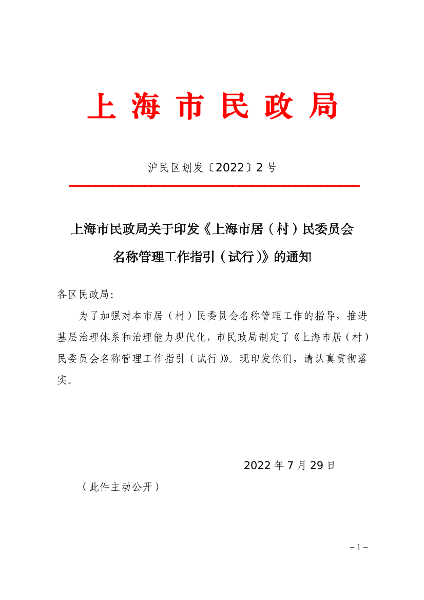 为了加强对本市居(村)民委员会名称管理工作的指导,推进基层治理体系和治理能力现代化,市民政局制定了《上海市居(村)民委员会名称管理工作指引(试行)》。现印发你们,请认真贯彻落实。