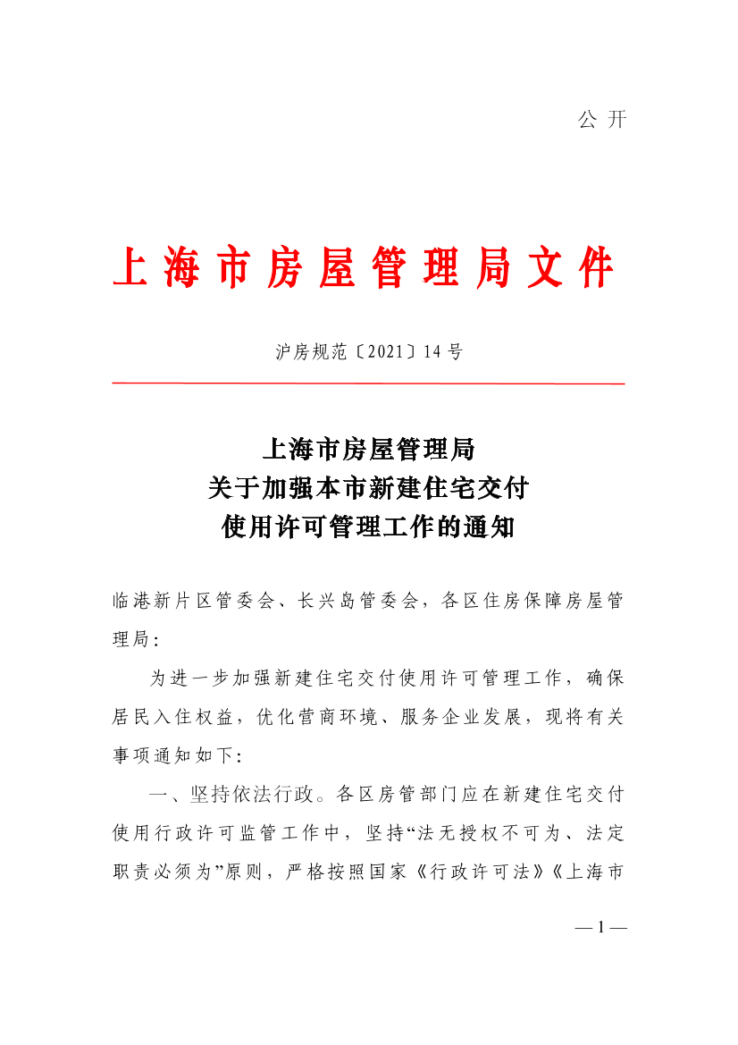 五、规范档案管理。各区房管部门核发《上海市新建 住宅交付使用许可证》后,应当按照档案管理的相关要求, 及时立卷归档、妥善保存。 本通知自 2022 年 1 月 1 日起施行,有效期至 2026 年 12 月 31 日。《关于调整本市新建住宅交付使用许可行政 — 3 —审批有关事项的通知》(沪建管〔2015〕1016)同时废止。