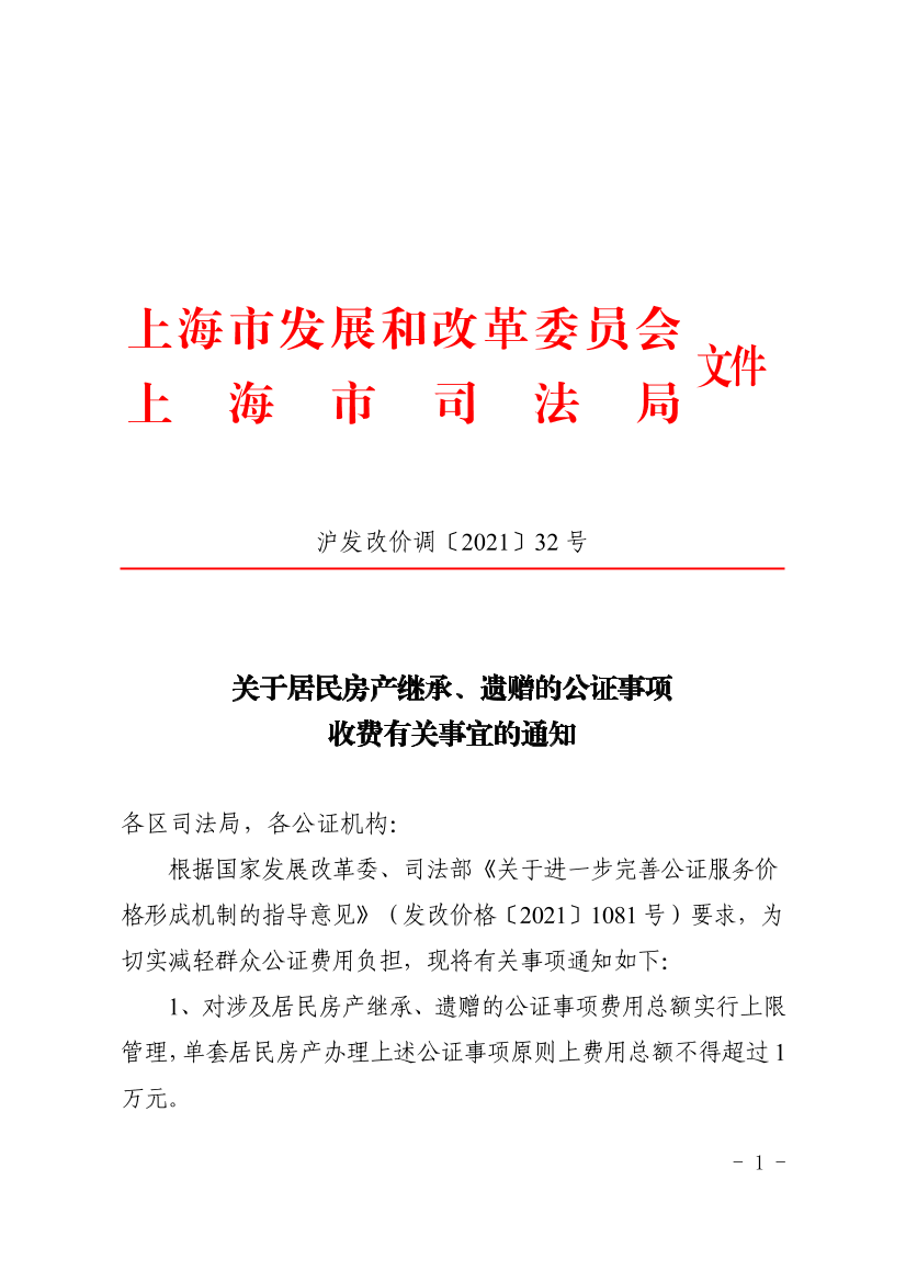 1、对涉及居民房产继承、遗赠的公证事项费用总额实行上限管理,单套居民房产办理上述公证事项原则上费用总额不得超过1万元。