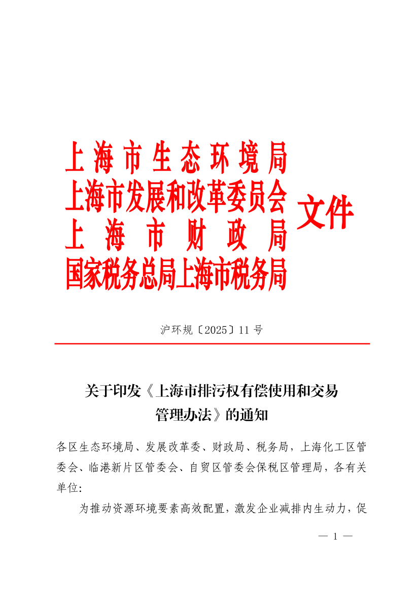 上海市生态环境局 上海市发展和改革委员会 上 海 市 财 政 局 国家税务总局上海市税务局