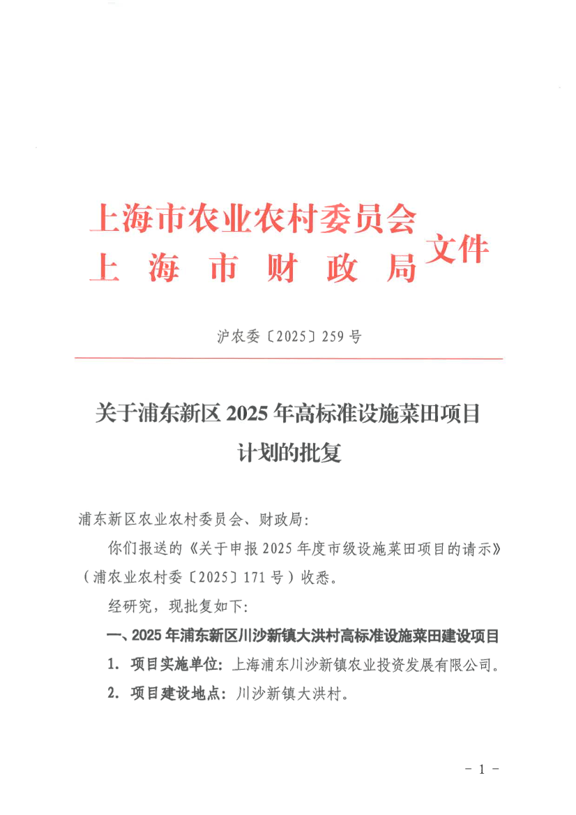 一、2025年浦东新区川沙新镇大洪村高标准设施菜田建设项目