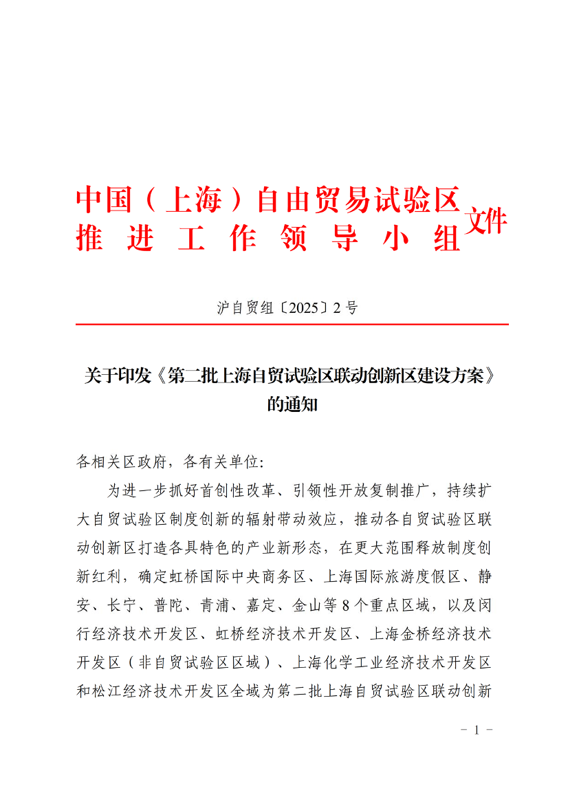 附件:1.第二批上海自贸试验区联动创新区建设方案