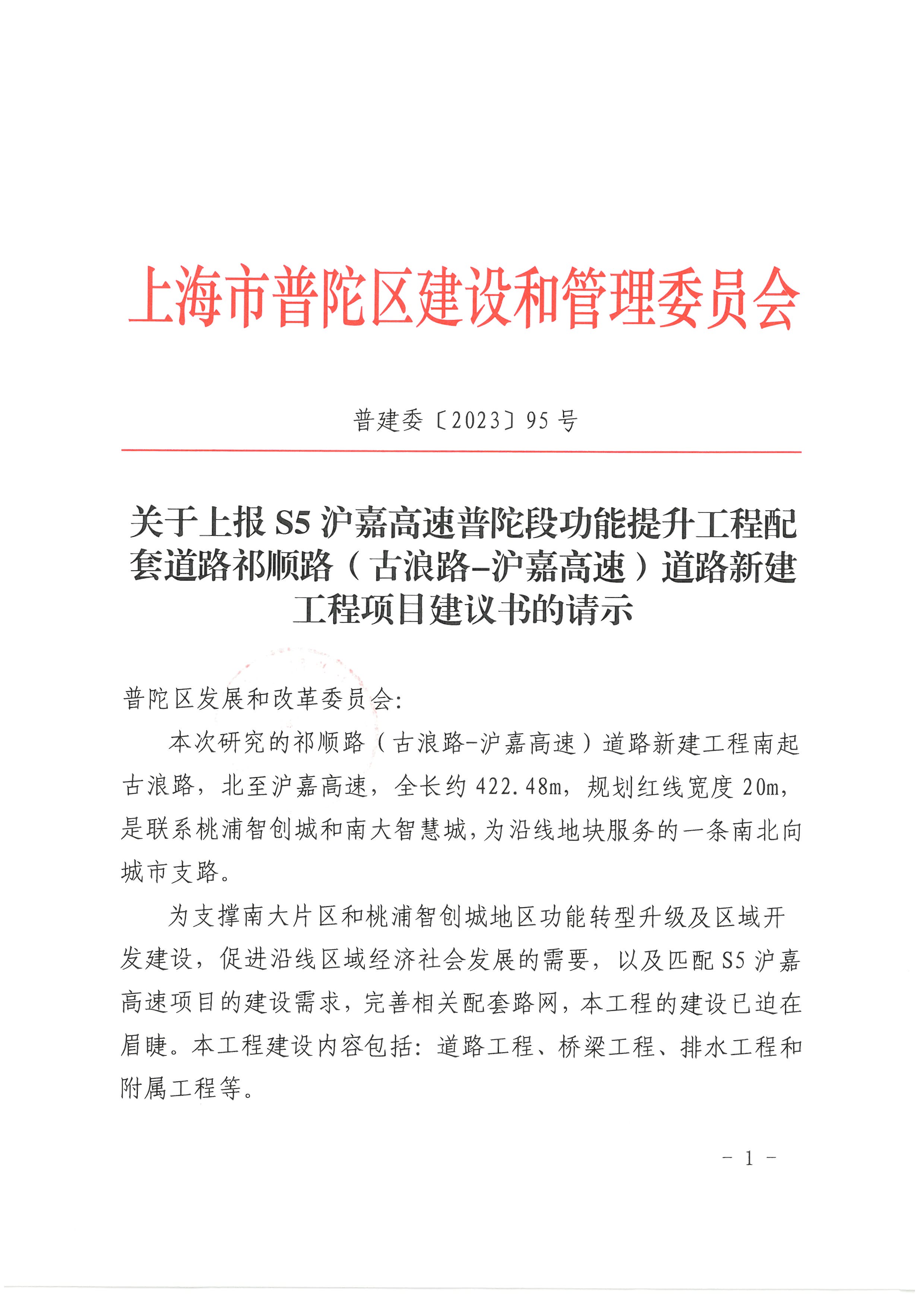 本次研究的祁顺路(古浪路-沪嘉高速)道路新建工程南起古浪路,北至沪嘉高速,全长约422.48m,规划红线宽度20m,是联系桃浦智创城和南大智慧城,为沿线地块服务的一条南北向城市支路。